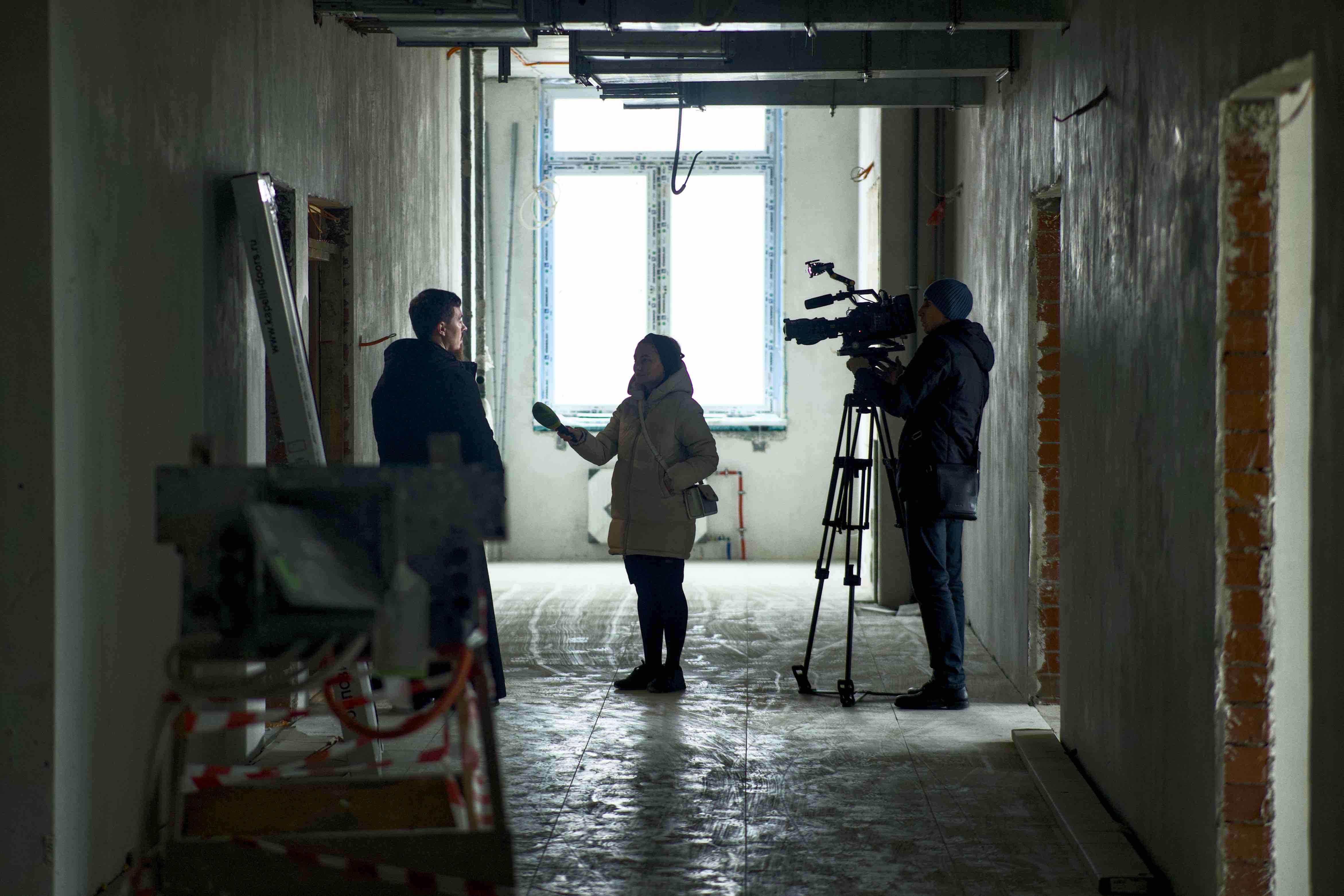 Журналистам показали жилой блок, который сможет вместить до 163 человек – он состоит из комнат площадью 15 квадратных метров, рассчитанных на проживание двоих человек; столовую на 151 посадочное место, актовый зал на 222 человека, спортзал площадью более 650 квадратных метров.