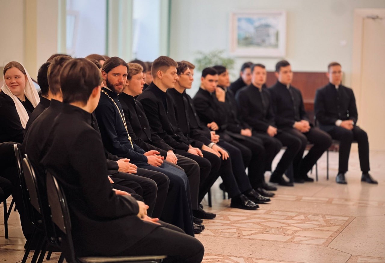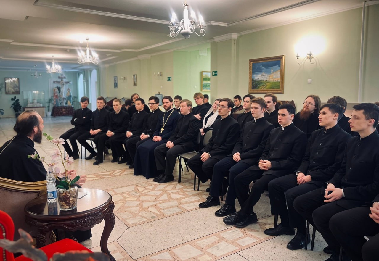 На встрече с семинаристами, которая состоялась в день памяти святого апостола Андрея Первозванного, 13 декабря 2025 года, кандидат богословия и филологических наук, доцент Московской духовной академии архимандрит Симеон (Томачинский) поделился своим опытом, рассказал о важности непрерывного духовного и интеллектуального роста, а также подчеркнул значение качественного образования для священнослужителя. В ходе беседы были затронуты темы, выходящие за рамки сугубо богословских дисциплин. Особый интерес вызвало обсуждение зарубежной литературы как источника мудрости для пастырского служения. Отец Симеон обратил внимание семинаристов на роман Грэма Грина «Сила и слава», который глубоко исследует конфликт между земными и небесными ценностями.