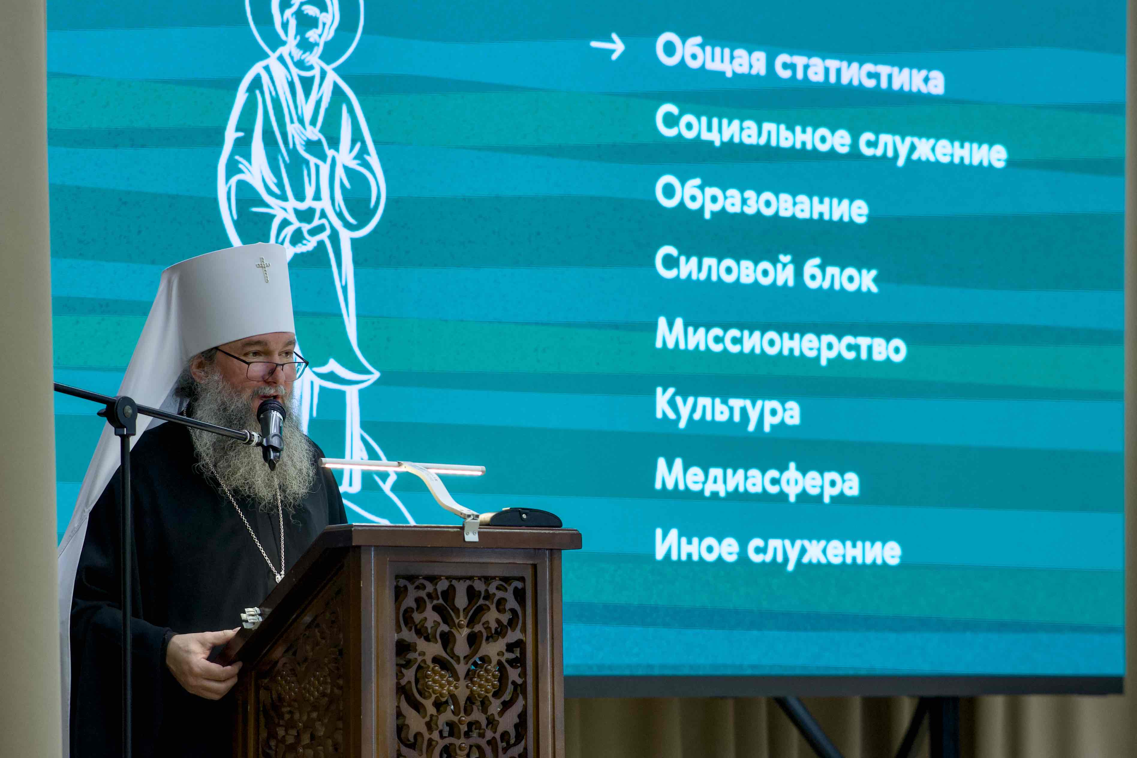 В докладе главы митрополии была отмечена деятельность епархии по взаимодействию с Вооруженными силами и с казачеством.