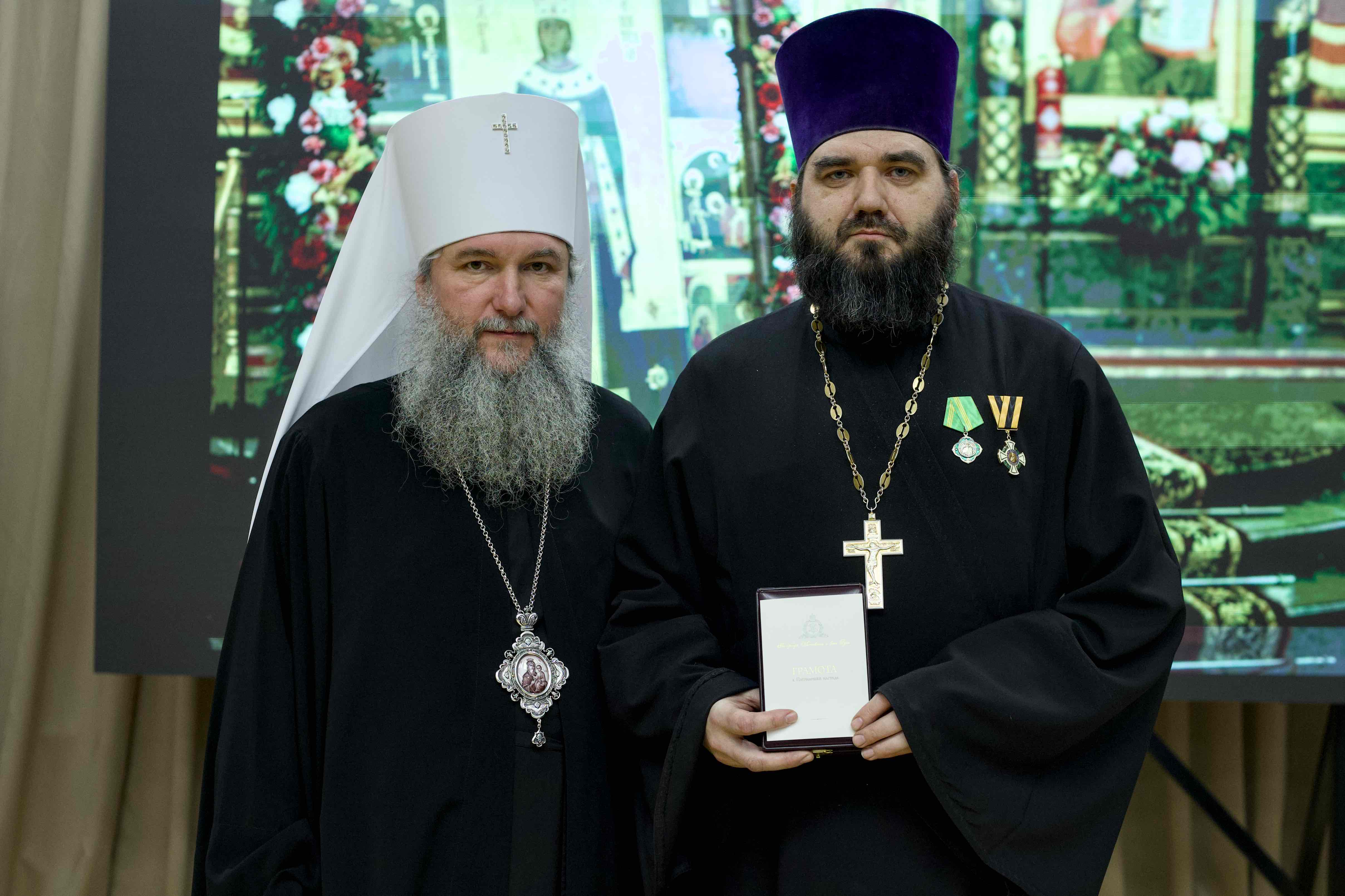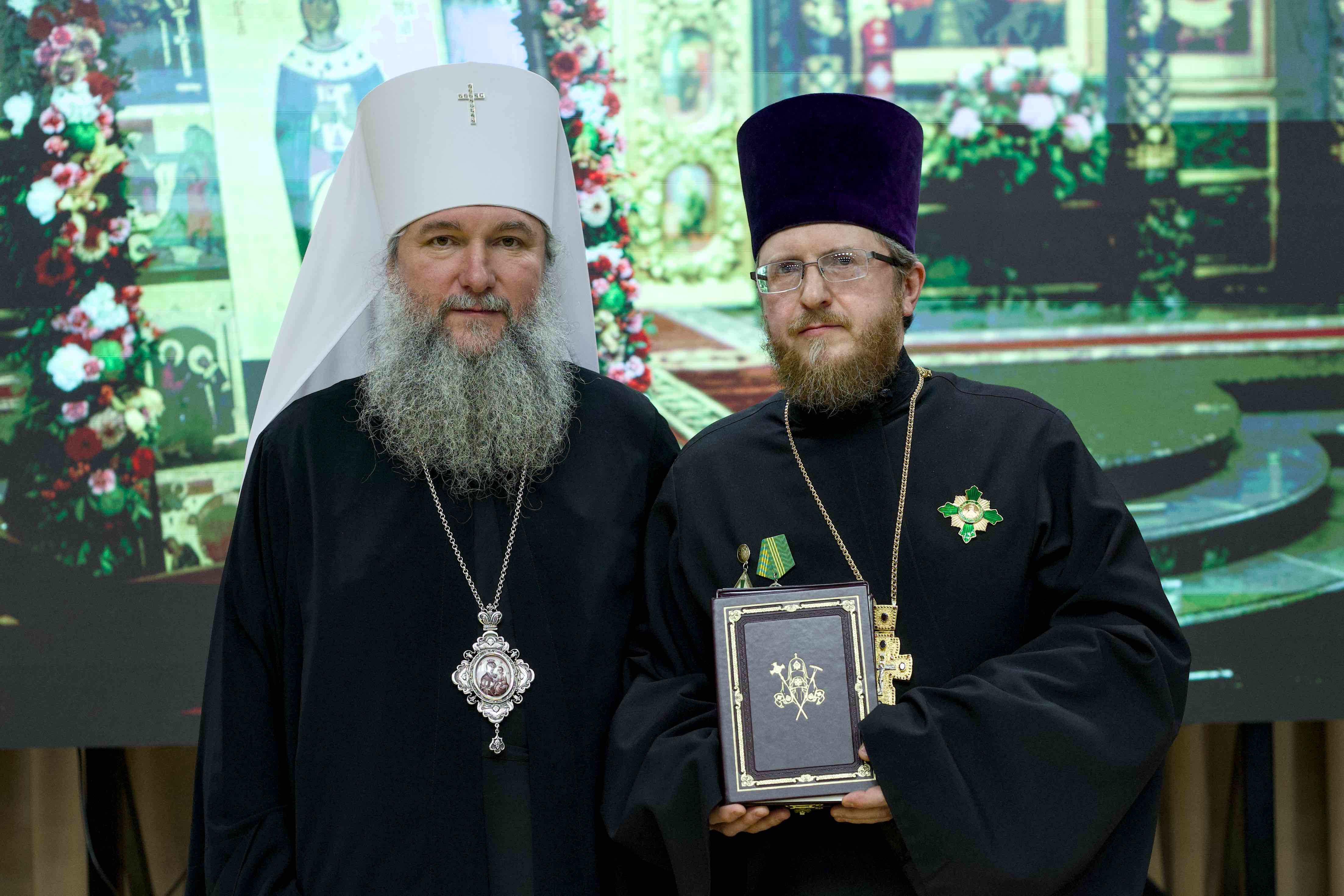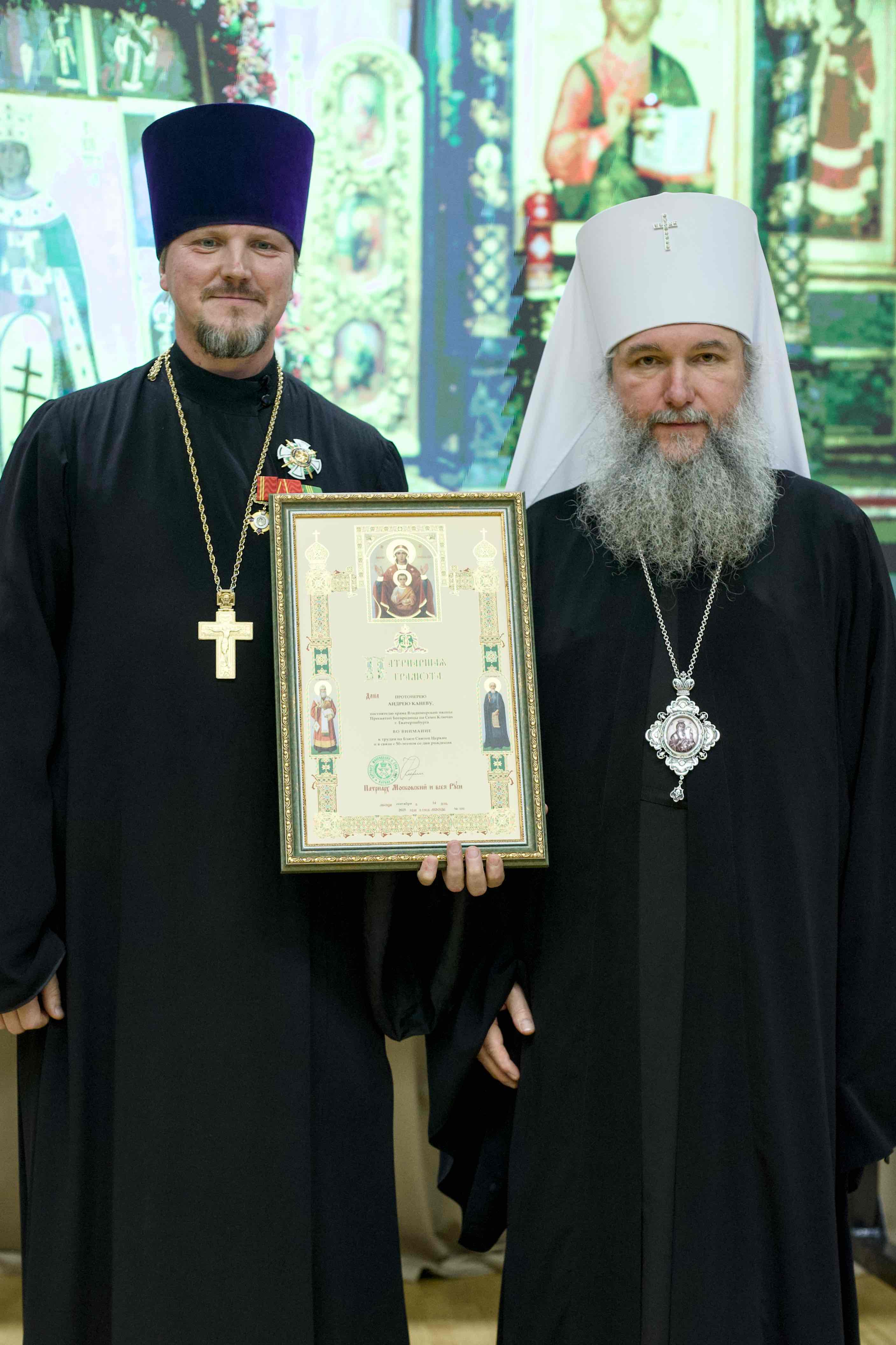 В завершение собрания митрополит Евгений вручил Патриаршие награды клирикам, особо потрудившимся на благо Святой Церкви и отмечающим в текущем году знаменательные даты своей жизни.