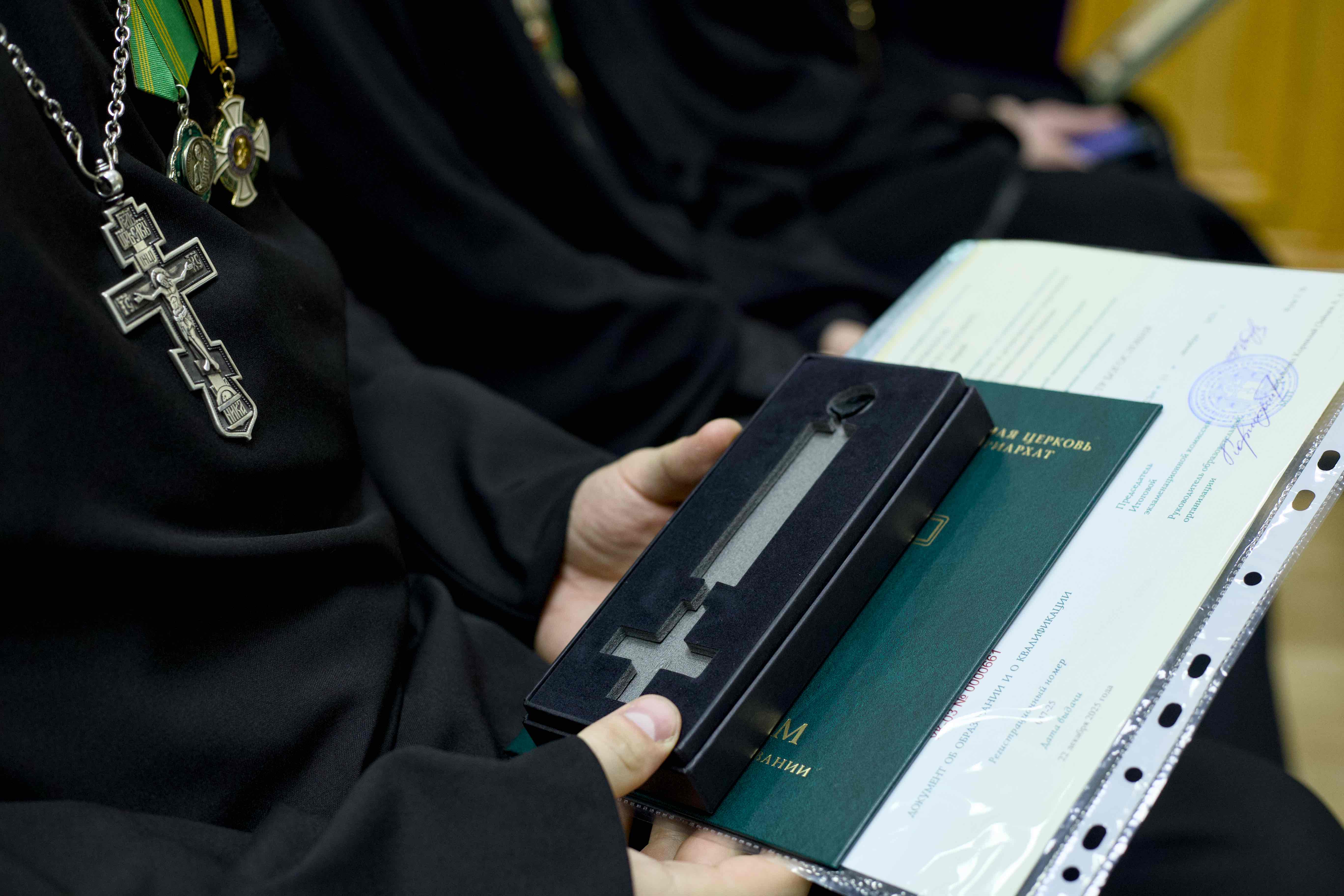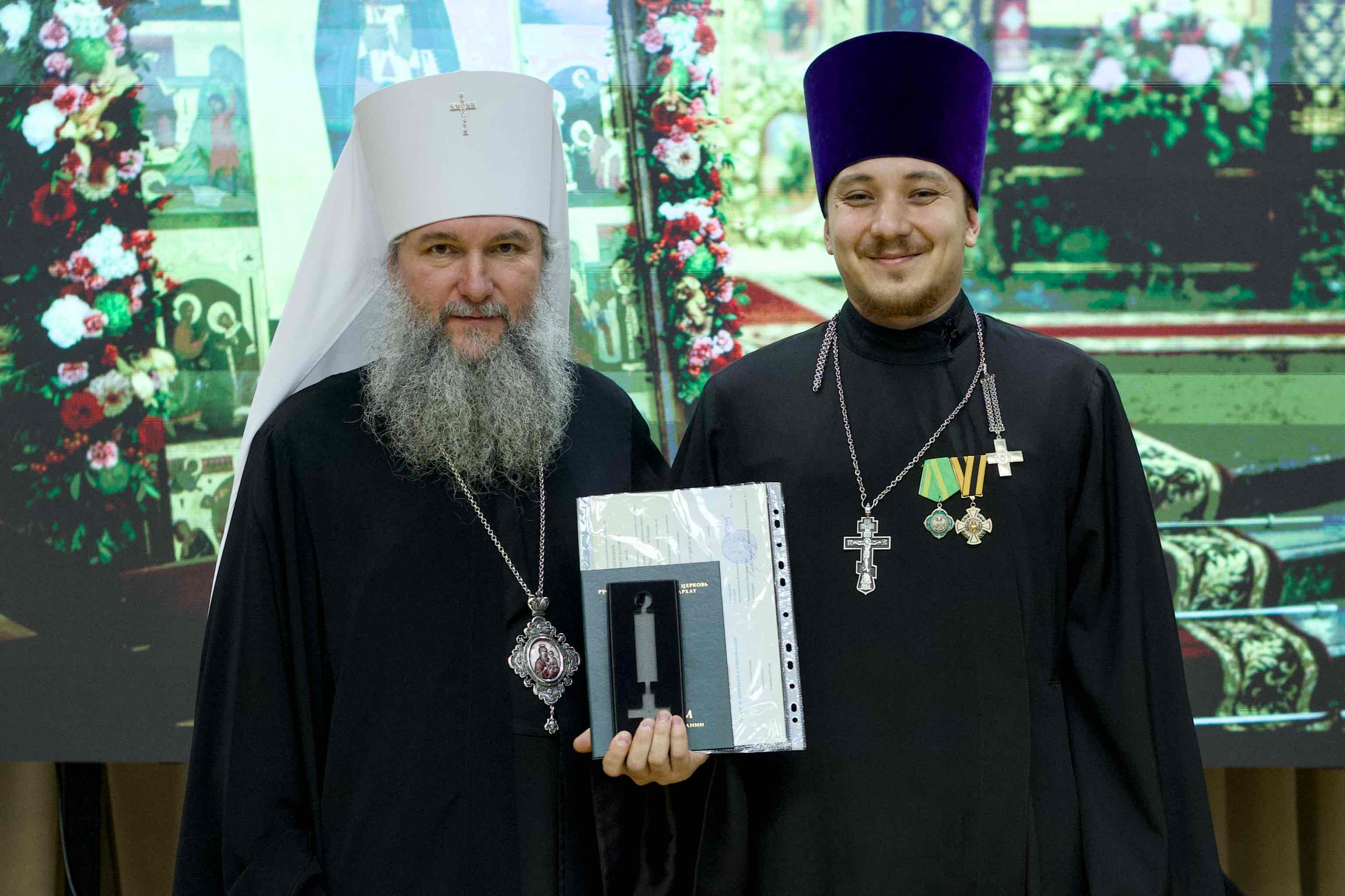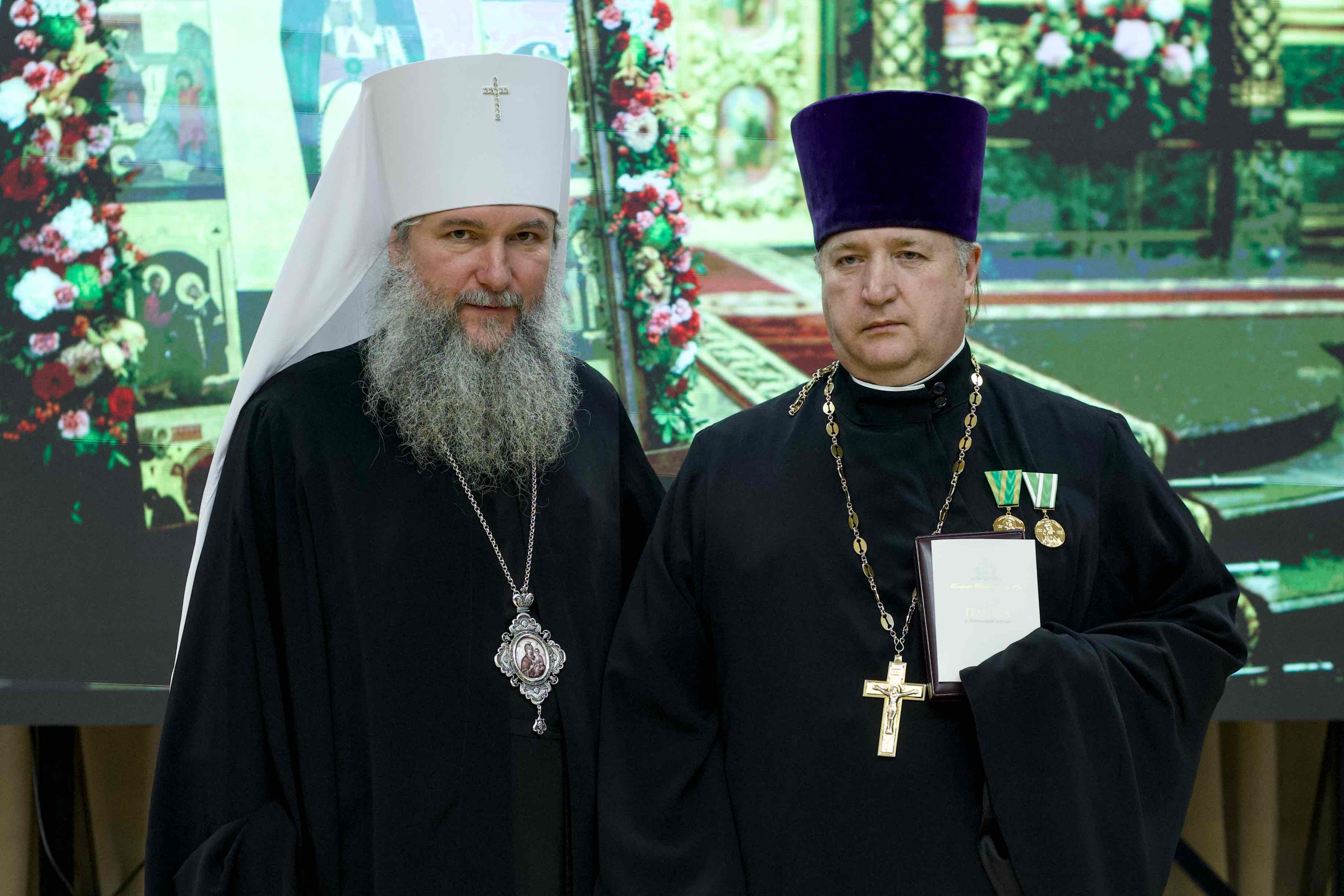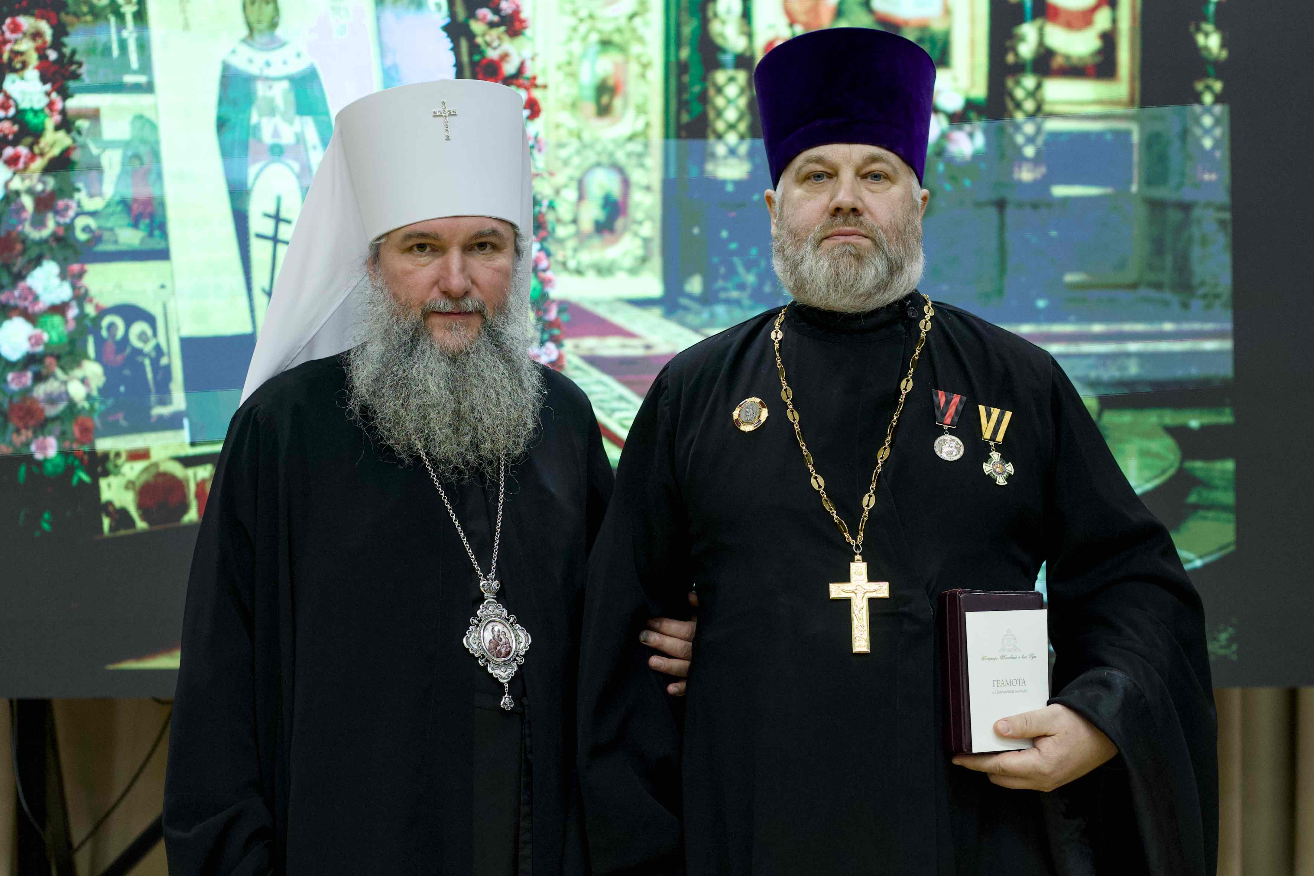 В завершение собрания митрополит Евгений вручил Патриаршие награды клирикам, особо потрудившимся на благо Святой Церкви и отмечающим в текущем году знаменательные даты своей жизни.