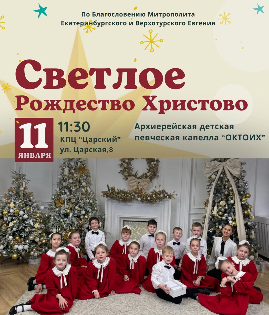 По благословению митрополита Екатеринбургского и Верхотурского Евгения Архиерейская детская певческая капелла «Октоих» дарит праздничный концерт, посвященный Рождеству Христову.
