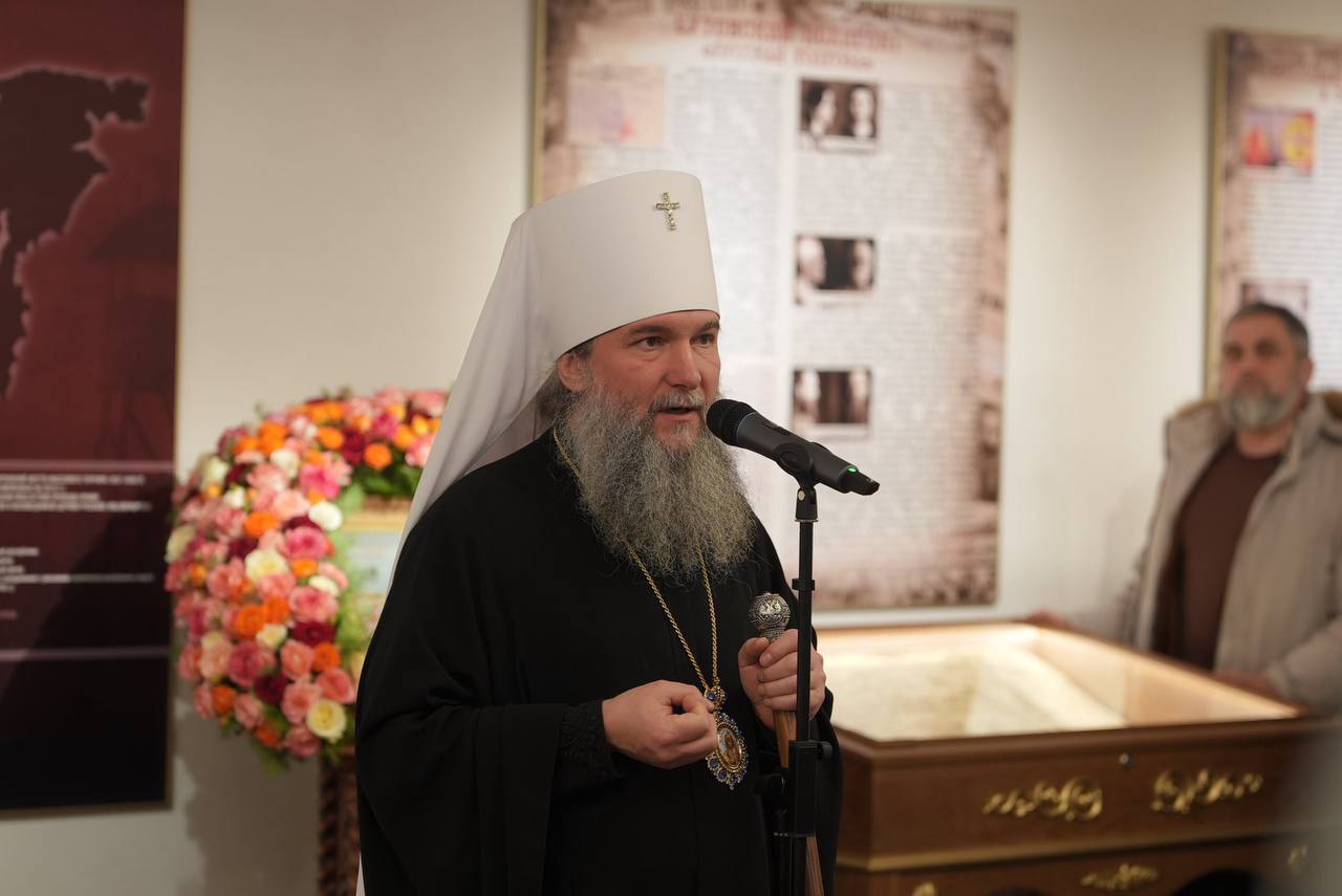 – Сегодня – священный сегодня день, когда мы находимся рядом со святыми новомучениками и исповедниками. (…) И перед нашими глазами (…) – подвиг святости святых, – отметил владыка. – На выставке представлены места погребения, захоронения этих особых людей. Новомученики — это люди, которые оказались в мире, в котором им предлагали отказаться от жизни и жить по смерти. Ведь жизнь – это Бог. Им предложили отказаться от Бога и жить без Бога. А жизнь без Бога — это смерть. Им предложили жить в смертном бытии. Они отказались. Они предпочли умереть для этого мира без Бога и возродиться жить в нашем Господе.