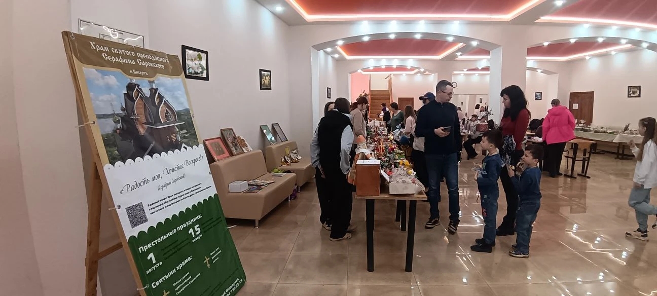 Прихожане храма во имя святого преподобного Серафима Саровского поселка Бисерть встретили Светлое Христово Воскресение. На ночное праздничное пасхальное богослужение собралось много жителей поселка. Днем 12 апреля 2026 года в Доме культуры «Искра» состоялся праздничный концерт, до начала которого силами прихожан храма была организована благотворительная ярмарка, мастер-классы, посвященные светлому дню Христова Воскресения.
