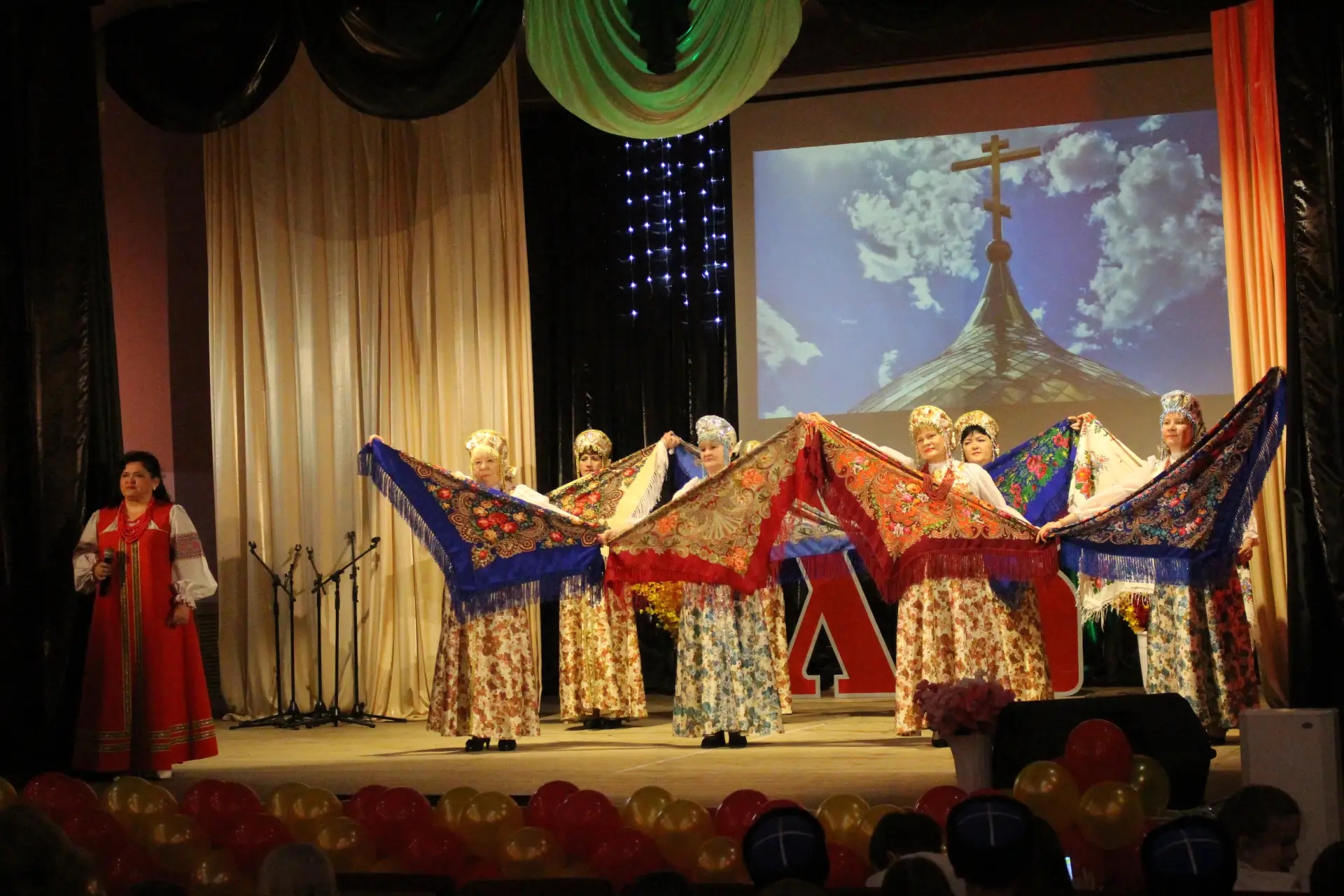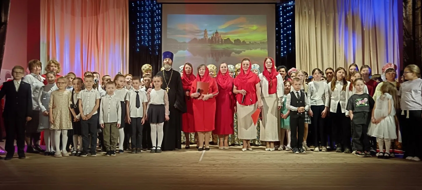 Заключительная песня в исполнении певчих храма собрала всех выступающих на сцене: