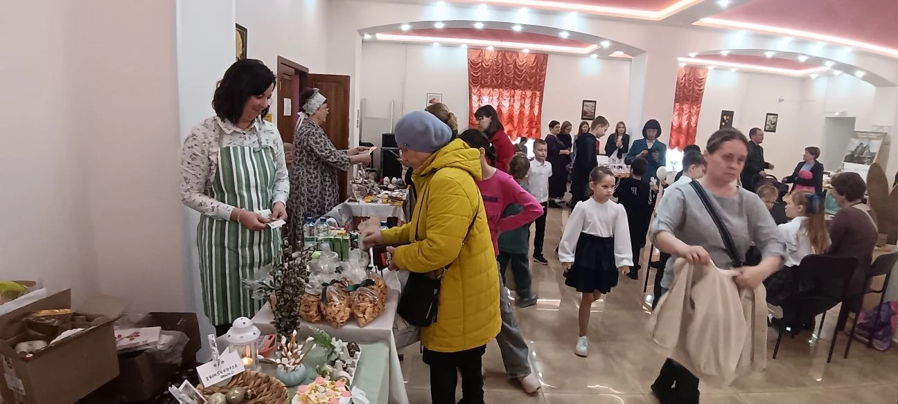 – «На Пасху солнце «играет», так говорили наши бабушки. В старину существовало народное поверье, что в день Пасхи солнце «играет». Это означало, что в этот праздник светило проявляет особую активность: меняет цвет, форму, положение на небе, мерцает, пульсирует или переливается разными оттенками. Вот и над нашим поселком в Пасху, 12 апреля 2026 года, солнце ярко светило, радуясь вместе с прихожанами храма и жителями Бисертского округа Христову Воскресению, – рассказала участница Клуба приходских пресс-секретарей Светлана Павловна Достовалова. – Весь муниципальный округ готовился к праздничному концерту. Дети и взрослые репетировали концертные номера, готовили праздничные мастер-классы. Все вложили свои любовь и таланты в поделки: были представлены и окрашенные необычно яйца, декупажи, вязаные игрушки, букеты из мыла, изделия из бересты, плетеные корзиночки, картины из бисера, имбирные пряники. Ярмарка была благотворительная, все пожертвования будут переданы в помощь воинам специальной военной операции.